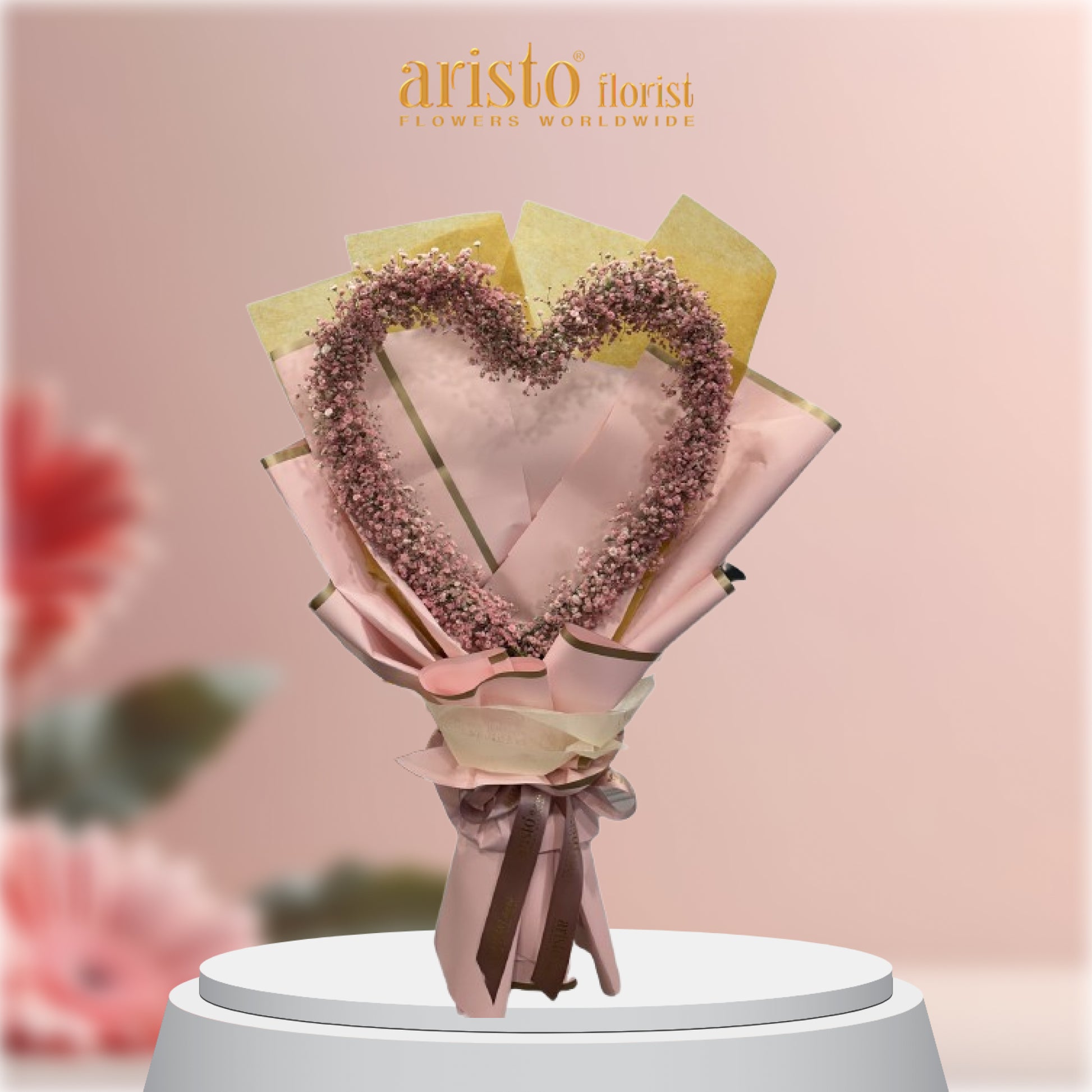 Like a sweet rendezvous between lovers, alluring blossoms meet wondrous emotions. Heart of gipsophilia with nice paper raping